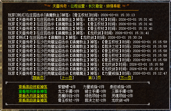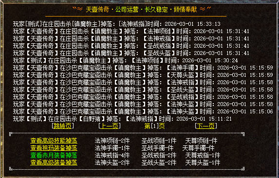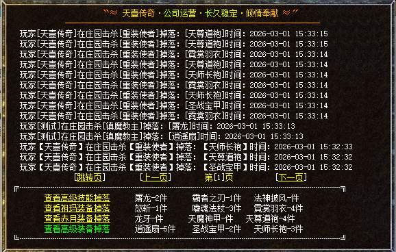 天壹传奇承诺:不控.不刷.不卖.给玩家一个真实的游戏平台.对任何可疑问题随时可以联系我们!